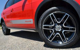 Já a Volkswagen caprichou mais na versão Rallye. Para começar, ele traz um parachoque frontal completamente diferente de versão regular. Ele tem o mesmo estilo das versões “Cross” da VW. Além da entrada de ar em formato colmeia, incorpora detalhes em cinza fosco e faróis auxiliares de dupla função (será explicado mais a frente). Na lateral também estão presentes os alargadores dos paralamas. As rodas são diamantadas com tons de preto brilhante, com pneus na medida 195/50 R16. Outro detalhe interessante são os espelhos laterais pintados em cinza fosco com repetidores de direção. Na traseira, um pequeno aerofólio e parachoque com detalhes em cinza fosco. O escapamento tem saída simples.