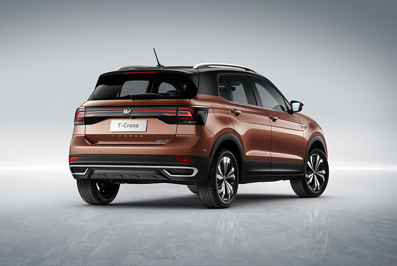 O T-Cross Highline 250 TSI agrega os itens: bancos revestidos de couro, espelho retrovisor interno eletrocrômico, espelhos retrovisores externos com rebatimento automático, iluminação ambiente em LED, detector de fadiga, sistema Kessy, sistema start&stop (que desliga/liga o motor quando parado em semáforos, por exemplo) e sensores de chuva e crepuscular.