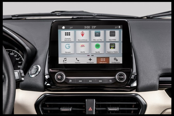 Outros itens de conforto do novo EcoSport 2.0 Titanium são a partida por botão, sensor de chuva, porta-luvas climatizado, porta-malas com abertura elétrica, acendimento automático dos faróis e vidros elétricos com acionamento a um toque.