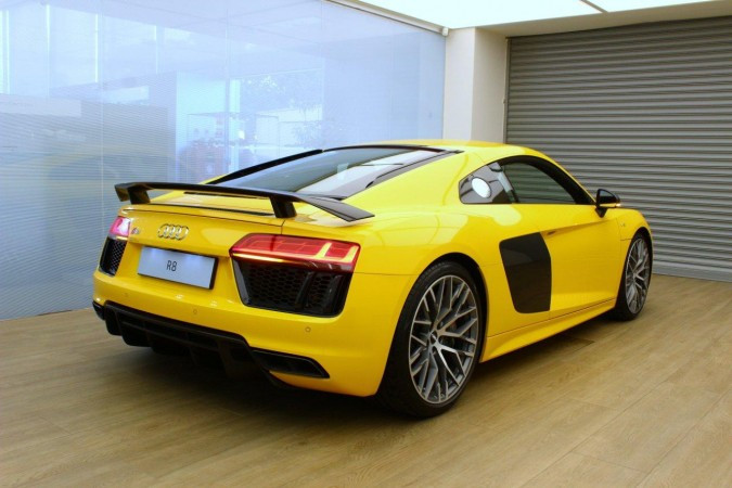 Também existe um exemplar único do novo Audi R8 V10 Plus, em solo brasileiro. Esse veículo também traz algumas exclusividades, como bancos com costura contrastante em amarelo. Externamente, os “sideblades” e espelhos retrovisores externos trazem acabamento em carbono. As rodas trazem desenho em 20 raios, com acabamento especial diamantado.