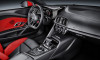 O interior traz soleiras das portas iluminadas, insertos de alumínio, e a exclusividade do modelo é indicada pela inscrição “1/200”. Os acabamentos das portas e os bancos são forrados de couro Napa, com combinação de cores preta e vermelha. Os encostos de cabeça trazem o emblema R8. Costuras contrastantes em prateado escuro destacam o volante, o acabamento das portas e os assentos.