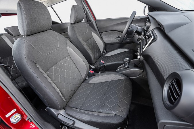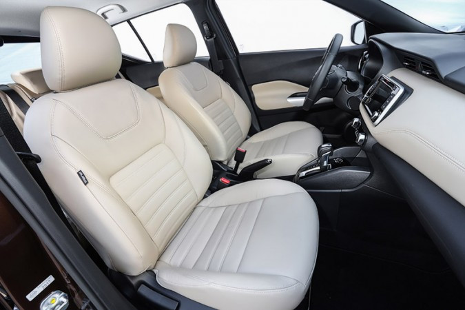 Outra novidade é a ampliação da oferta de cores para a linha do modelo fabricado no Brasil. Uma delas é a vermelho \"Malbec\". As outras são novas opções \"2-Tone\", combinação que tem o teto em cor diferente da carroceria. Além da carroceria cinza com teto laranja oferecida no Nissan Kicks vendido até então, há outras quatro: prata com teto preto, branco com teto preto, cinza \"Rust\" com teto preto e preto com teto cinza \"Grafiti\".