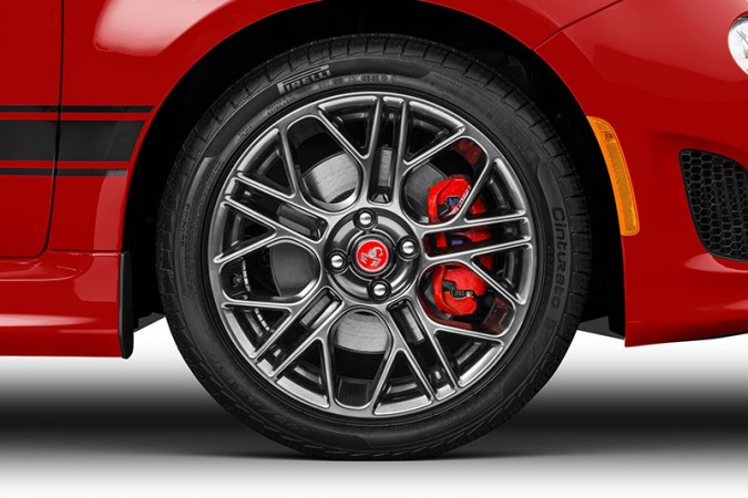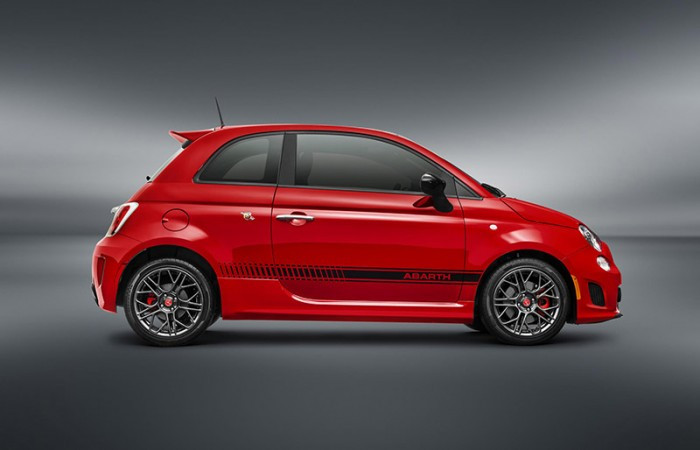 Desenvolvido para entusiastas da velocidade, o Fiat 500 Abarth pode ser identificado pelo duplo escapamento cromado, faróis e rodas de liga leve de 16 polegadas com pneus 195/45 R16, faixas laterais disponíveis nas cores vermelho, branco e preto, e capa dos retrovisores externos acompanhando a mesma cor da faixa.