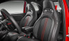 Internamente, bancos anatômicos em formato concha são o destaque. O painel vem com medidor de pressão do turbo, num instrumento exclusivo e dedicado. O volante tem base achatada, e o comando do câmbio e painel são revestidos em couro com costura vermelha.