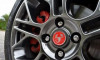 Os freios também são diferentes, com discos redimensionados e pinças maiores, pintadas em vermelho para combinar com o estilo esportivo.