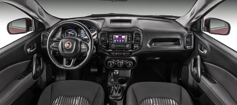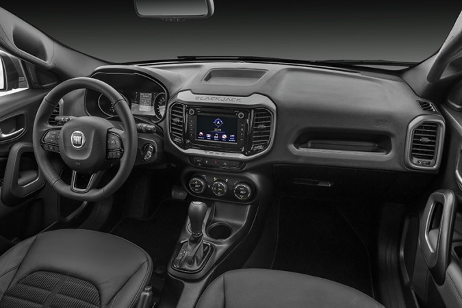Com a nova versão de entrada, a Toro Freedom 1.8 foi para R$ 102.990 e ficou mais equipada. Ela recebeu rodas de liga leve de 16 polegadas, sensor de estacionamento traseiro, central multimídia Uconnect com tela de 5 polegadas, câmera de ré, ar-condicionado de duas zonas, retrovisores com ajuste elétrico, faróis de neblina, capota marítima e volante multifuncional.