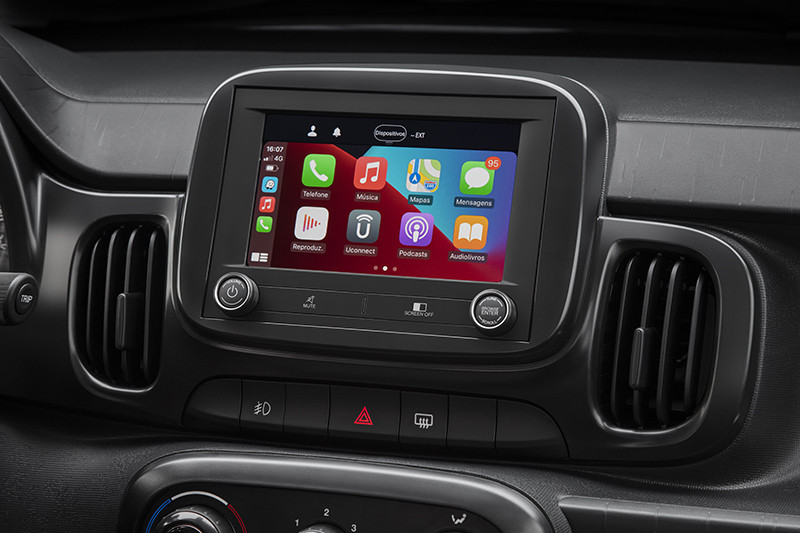 Com a nova geração da central multimídia, o Mobi passa a oferecer o sistema de infoentretenimento mais moderno da categoria. O UConnect 7” é o mesmo que equipa as picapes Toro e Nova Strada.