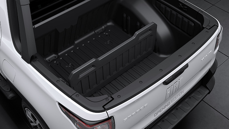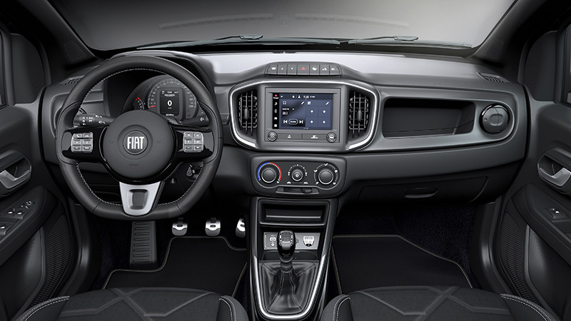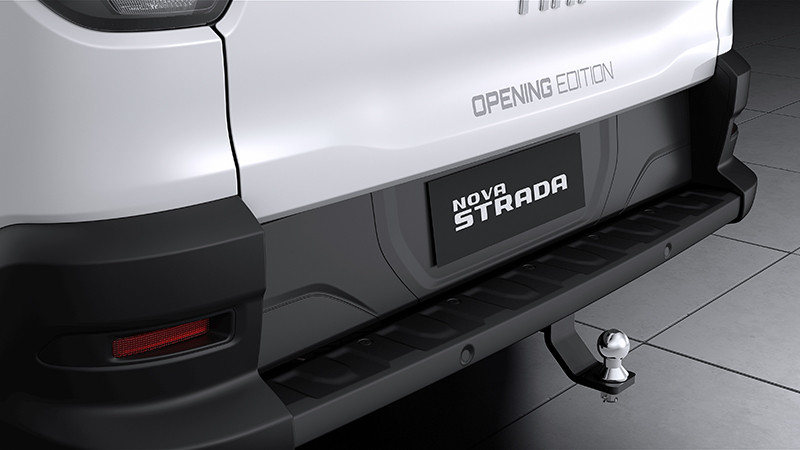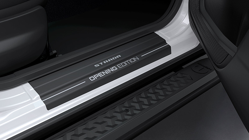 Internamente, a série limitada apresenta diversos elementos na cabine dupla que a diferenciam na gama. O revestimento do volante em couro tem costura de cor prata, que é o mesmo tom da mostrina, das pedaleiras e da costura da coifa do câmbio. A Nova Strada Opening Edition conta ainda com um badge que indica a numeração do modelo – que vai de 1 a 250 – e tapete de carpete com borda em vinil e pesponto prata.