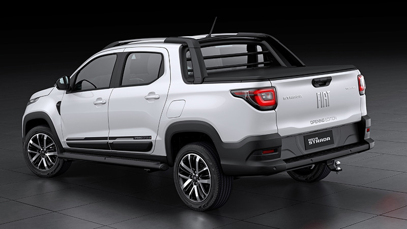 Baseada na versão topo de linha Volcano, que traz os faróis de LED com luzes DRL (Daytime Running Light), o design da Nova Strada recebeu skidplate grafite na dianteira e barras de teto na mesma cor. Na lateral, rodas de liga leve de 16 polegadas com acabamento diamantado, estribos laterais, retrovisores em preto brilhante, badges, adesivos e soleiras em vinil alusivos à série limitada. A traseira é completada por um engate de reboque e a caçamba possui um exclusivo e útil divisor de carga, com o adesivo Opening Edition ilustrando a tampa.