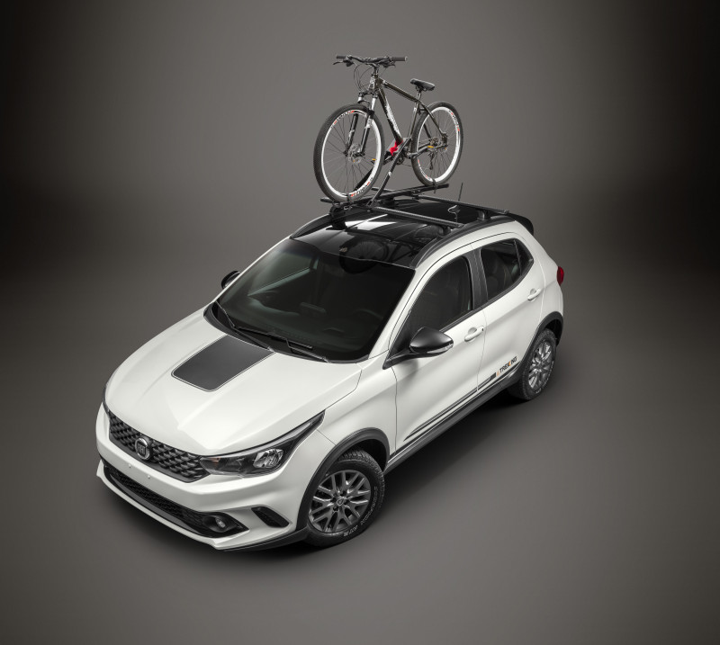 Além de todos os diferenciais que já fazem parte da versão Trekking, a Mopar oferece muito mais possibilidades de tornar cada Fiat Argo um veículo único. São mais de 50 acessórios disponíveis para o modelo, sendo que dois são exclusivos do Argo Trekking: as barras transversais de teto e o suporte para bicicleta. Este é apoiado naquelas que, por sua vez, precisam das barras longitudinais – item de série específico da configuração aventureira do hatch.