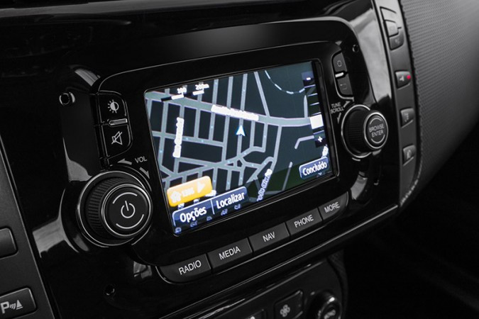 Outra opção é a central multimídia com sistema de navegação GPS que utiliza um software fornecido pela TOM TOM (líder mundial em sistema de navegação). Esse sistema Uconnect Touch NAV oferece mais funções, como: planejamento de percurso; orientações por voz; gerenciamento de pontos de interesse; atualização dos mapas Tom Tom pela porta USB e personalização do menu.