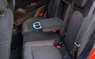 Outro equipamento diferenciado e muito útil, é o apoia-braço central no banco do moto rista com vão refrigerado. Nele, é possível deixar uma lata ou garrafa pet pequena (300 ml), e quando o ar-condicionado está ligado, o compartimento permanece refrigerado. Isso é uma exclusividade na categoria.
