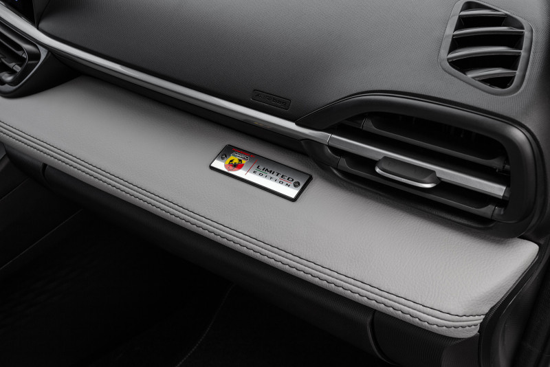 Por dentro, o painel de instrumentos recebeu um revestimento em couro nas versões Limited Edition Powered by Abarth e Impetus, e em tecido na Audace, sempre com costura dupla. O apoia-braço central e painéis das portas dianteiras, que agora apresentam também a costura dupla. Outro destaque é o acabamento soft touch ao redor das maçanetas internas das portas.