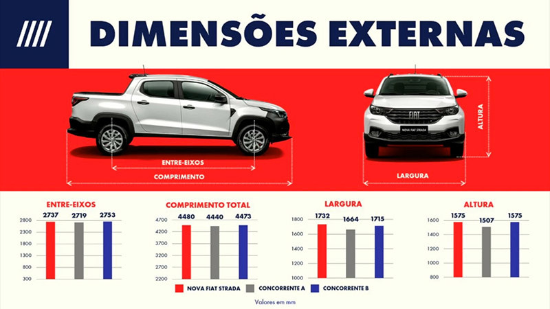 Além do visual imponente e de todas as evoluções técnicas que a Nova Strada apresenta, o desenvolvimento da nova picape levou em consideração a praticidade que os clientes esperam encontrar em seus deslocamentos nos centros urbanos.