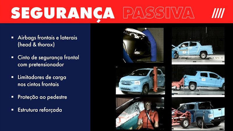 Além desses equipamentos, a Nova Strada conta com estrutura reforçada, que foi sistematicamente testada no Safety Center da FCA Latam, em Betim (MG). O veículo foi avaliado em crash tests convencionais, inclusive com um inédito teste de impacto lateral contra poste.