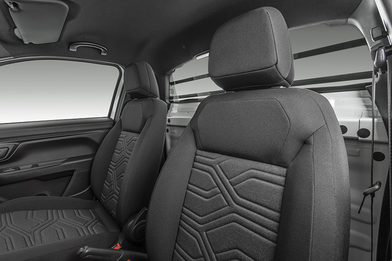 Além dos quatro airbags presentes de série nas versões de cabine dupla, o modelo dispõe de cintos de segurança frontais com pré-tensionadores e limitadores de carga, e bancos que protegem os ocupantes do efeito chicote (whiplash) na coluna cervical em acidentes.