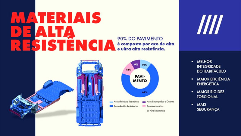 Com 10% a mais em rigidez torcional, o modelo aumentou sua já reconhecida resistência e durabilidade estrutural. Isso se deve à utilização de aços nobres em hot stamping e aços de alta e ultra alta resistência em 90% de sua base (under body), garantindo mais segurança pela melhor integridade do habitáculo e maior eficiência energética.
