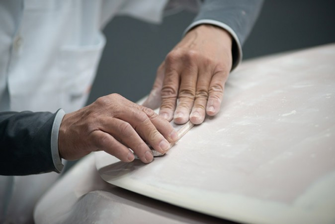 Na sequência, toda a estrutura é lixada. Os acertos são feitos manualmente pelos modeladores e designers, para a conferência das proporções e de cada detalhe. “Nessa fase, já temos a sensação do volume e das linhas, trazendo o que estava no desenho para o modelo físico”, destaca Celso Morassi, supervisor de Modelação do Design Center FCA Latam.