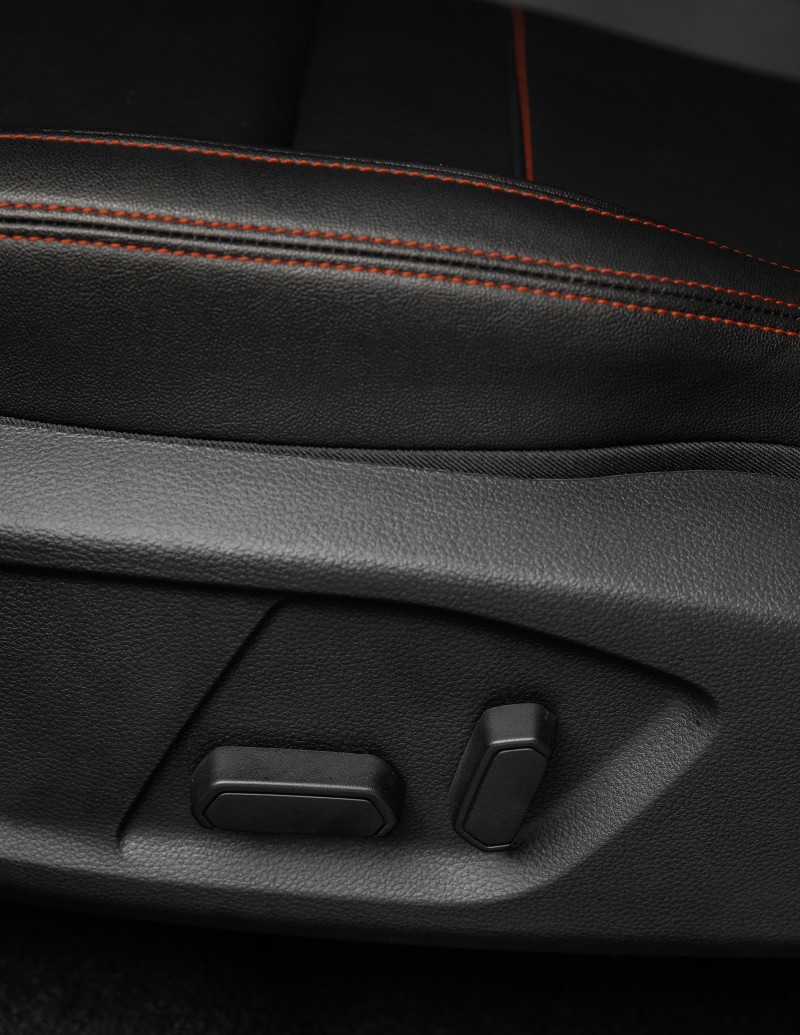 A grade dianteira com desenho exclusivo traz o logotipo oval da marca em destaque no centro. Assim como a parte central inferior do para-choque, ela tem acabamento em preto brilhante, e se conecta aos faróis com máscara escura formando um conjunto harmonioso. Os faróis full-LED com projetores são exclusivos da versão.