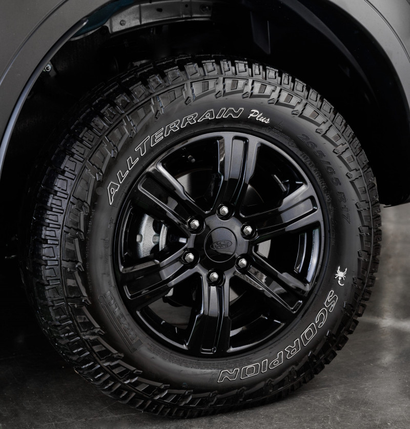 As rodas de 18 polegadas têm visual exclusivo e são calçadas com pneus Pirelli Scorpion 265/60 R18 All Terrain (50% on-road e 50% off-road). Quem quiser enfrentar trilhas mais pesadas pode optar pelas rodas de 17” com pneus 265/65 R17 All Terrain Plus da versão Storm, por um custo adicional de R$2.000.