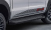 O santantônio tubular, exclusivo e funcional, dispõe de pontos de ancoragem para amarração de equipamentos. Na lateral, os alargadores de paralama em preto fosco são projetados para enfrentar batidas de pedras no off-road. A faixa cinza na região inferior das portas, logo acima dos estribos tipo plataforma, é complementada pela assinatura FX4 em vermelho.