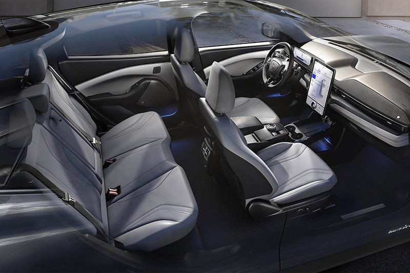 O Mach-E traz a próxima geração da central multimídia SYNC, um sistema inteligente que transforma o carro em assistente digital e aprende os hábitos do motorista, dando orientações de viagem conectado na nuvem. Com uma tela vertical sensível ao toque 15,5 polegadas no console central e interface semelhante a um smartphone, ela é capaz de responder perguntas de forma natural e facilita o planejamento de rotas. Além disso, permite salvar as configurações favoritas de vários motoristas e fazer sugestões personalizadas, como destinos de navegação, locais de recarga, mídia e telefones, favorecendo a mudança para um estilo de vida totalmente elétrico.
