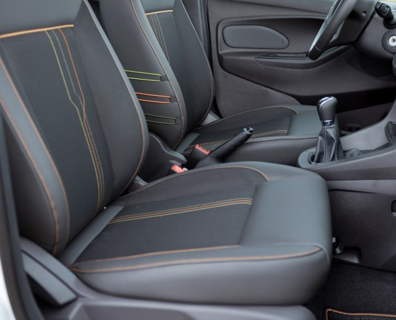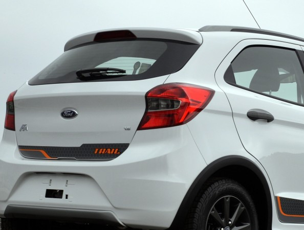 O Ka Trail chega ao mercado no primeiro trimestre de 2017, trazendo a opção de moto res 1.0 ou 1.5 litro. Externamente, destacam-se as rodas de liga leve de 15 polegadas e faróis de neblina com moldura diferenciada, que agregam maior valor ao produto. O acabamento customizado inclui rack de teto, capas dos retrovisores e maçanetas na cor cinza, além de adesivos nas laterais e na traseira com grafismo em cinza e laranja, acentuando o design moderno do veículo. A cabine tem bancos parcialmente em couro com costura contrastante em laranja e verde, pedal esportivo e soleira com o logotipo Trail.