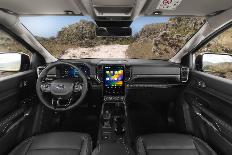 A versão exibida no saguão da sede da marca, em São Paulo, é a topo de linha Limited, com bancos de couro e acabamento premium. Na cabine, a Nova Ranger chama a atenção pelo painel digital de 12,4” e o sistema multimídia SYNC 4 de nova geração com tela vertical de 12”, que contribui para criar um ambiente imersivo e conectado e proporcionar uma experiência de uso sem precedentes, com acesso pelo aplicativo FordPass.