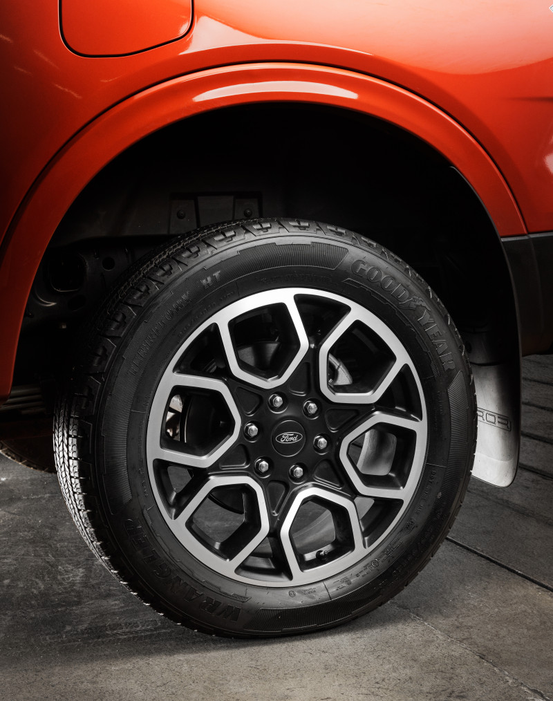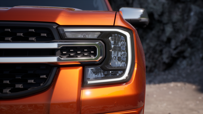 Suas linhas robustas e icônicas, inspiradas na Série F, líder incontestável do mercado norte-americano há mais de 40 anos, se destacam pela frente imponente, faróis de LED em formato de C e perfil dinâmico. O design musculoso segue o estilo global Raça Forte de picapes da Ford.
