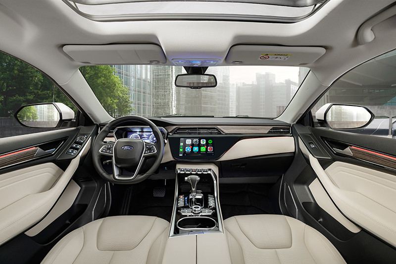 A versão Titanium tem interior claro, uma tendência no segmento premium, que amplia a percepção de espaço e conforto. Os bancos são parcialmente em couro de alta qualidade, com um sistema exclusivo de aquecimento e resfriamento para os passageiros da frente.