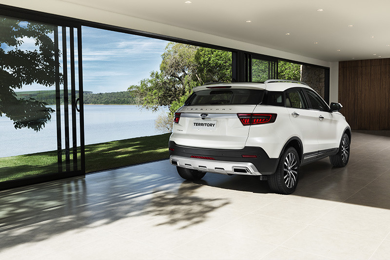 O Territory é um veículo que traz o DNA de engenharia Ford, marca com tradição global em SUVs. Ele foi desenvolvido em parceria com a JMC e refinado pela engenharia brasileira para atender as preferências e condições de uso do nosso mercado. Esse trabalho envolveu cerca de 150 engenheiros e técnicos e mais de 100.000 km rodados em testes de campo em diversas regiões do Brasil, além de mais de 10.000 horas de validações em laboratórios e pistas especiais.