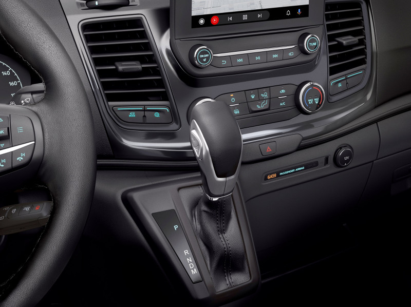 A transmissão automática da Transit utiliza uma programação adaptativa de mudança em tempo real que seleciona a marcha ideal para otimizar o desempenho e a economia de combustível em cada cenário de direção. Junto com o moderno motor 2.0 litros EcoBlue diesel, com 165 cv (@ 3.500 rpm) e torque de 39,7 kgfm (@ 1.750–2.750 rpm), ela garante força em aclives, segurança em declives e ultrapassagens, melhorando ainda mais a dirigibilidade, uma das características mais elogiadas da van.