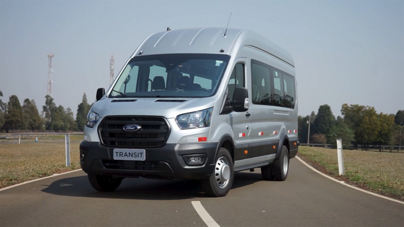 A Transit de passageiros, ou minibus, também vem de série com uma central multimídia completa, o SYNC Move, com tela de 8 polegadas, comandos de voz e conexão com Android Auto e Apple CarPlay. Ela já traz aplicativos como Waze, Spotify e Zello instalados de série e inclui um botão para acesso direto ao 0800 da Ford com um simples toque na tela, por meio do celular pareado, para informações ou assistência 24 horas.