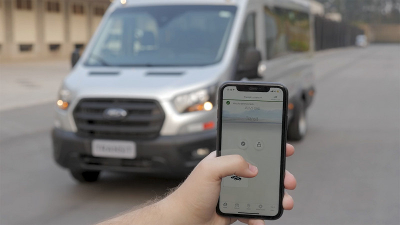A van da Ford é a primeira a vir com um modem embarcado para acesso a dados e comandos remotos pelo celular com o aplicativo FordPass