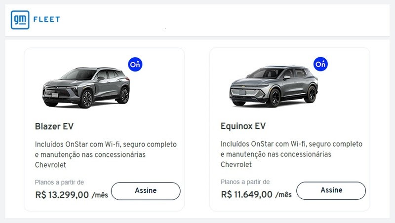 Contratos a partir de duas unidades podem ser compostos por qualquer modelo do portfólio da Chevrolet, incluindo Onix, Tracker, Spin, Montana, Bolt EUV, Trailblazer e S10. As simulações e planos de adesão são feitas diretamente no site da GM Fleet. Neste caso, especialistas orientam e prestam consultoria para melhor composição da frota.