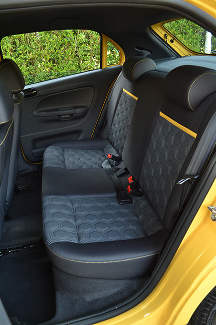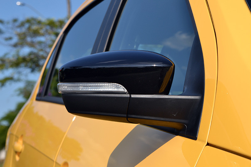 Além disso, os retrovisores trazem a capa na cor preto brilhante, bem como o defletor na tampa do porta-malas. Outro detalhe de estilo é a possibilidade das rodas de liga leve 14 polegadas, com um desenho interessante batizado de “Thor”, com pneus nas medidas 185/65 R14. O desenho da roda lembra o de uma bola de futebol. Essas rodas são oferecidas para como opcionais.