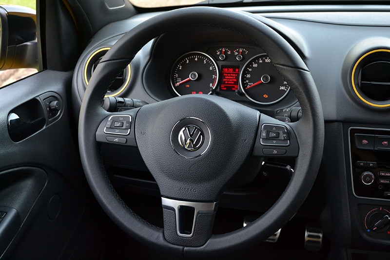 E para quem quer um algo mais no Gol Seleção, existe a opção do “Camisa 10” com a oferta exclusiva do “pacote Brasil”. Esse é traz pintura especial na carroceria em Amarelo Solaris; faróis de neblina; aros dos difusores de ar e da alavanca de câmbio em amarelo. E nesse pacote, estão incluídas as rodas de 15 polegadas (“Thor Rallye”) e o revestimento dos bancos na cor preta e com inserto em amarelo. Esse último foi inspirado na terceira camisa da Seleção Brasileira. O pacote Brasil está disponível apenas para o Gol Seleção com moto r 1.6 litro.