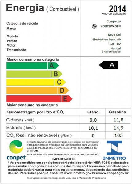 O Volkswagen Gol, modelo mais vendido do mercado nacional, é também o veículo com mais “selos verdes” no Programa de Etiquetagem Veicular do INMETRO (Instituto Nacional de Metrologia, Qualidade e Tecnologia).
