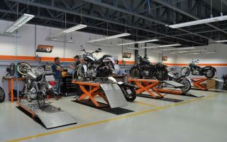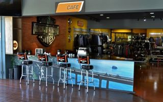 Com um visual que remete exatamente o estilo clássico da marca Harley Davidson, a concessionária é ampla e muito bem aparelhada. Vários ambientes se completam no local. Além do amplo showroom que acomoda mais de 20 moto cicletas simultaneamente, o local ainda conta com espaço café, área para a grife de roupas batizada de MotorClothes, seção de peças e acessórios, área de descanso, pátio interno para estacionamento de moto s"> moto s em espera e ampla oficina com mais de 6 elevadores individuais.