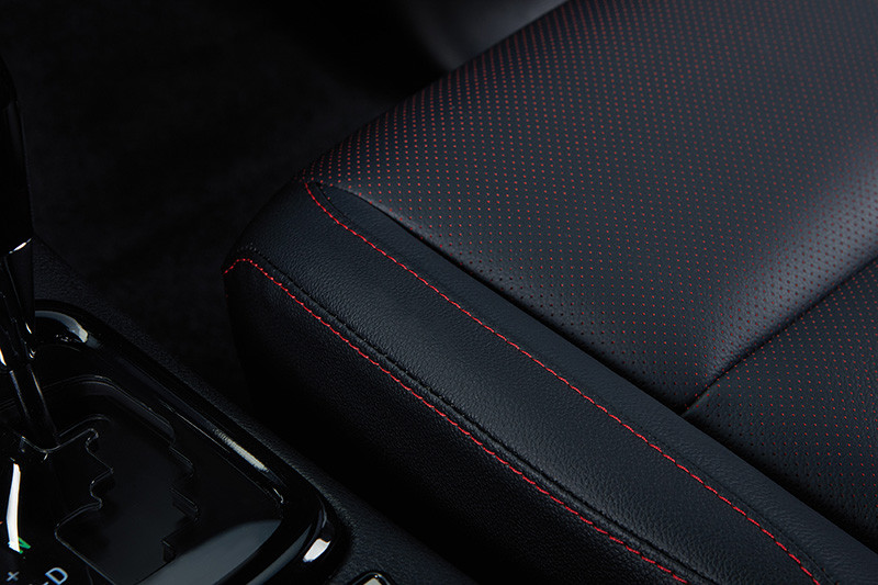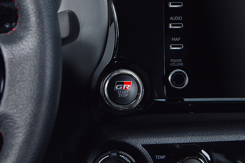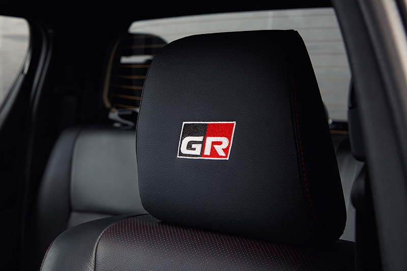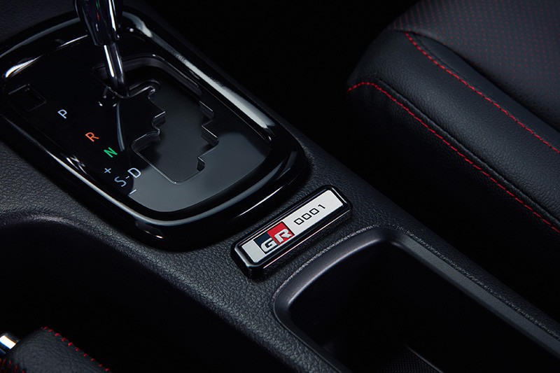 No interior, os bancos são revestidos de couro preto perfurado com fundo vermelho, em sintonia com as costuras vermelhas dos braços, freio de mão e console central. O estofamento no teto e as colunas na cor preta reforçam a esportividade e as características da marca GAZOO Racing. O toque final fica para o botão de partida, a smart key, a placa numerada, os apoios de cabeça e os tapetes com o logo GR.