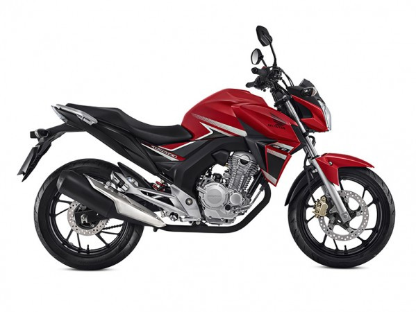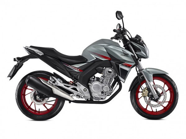 Disponível na versão ABS e STD, a nova cor Prata Metálico, mescla traços modernos e agressivos com toda robustez e esportividade que valorizam o porte (estilo naked), e também pela disposição do logotipo CB na carenagem e às rodas em Vermelho que recebem forte inspiração em modelos Honda de maior cilindrada. Na versão STD, haverá ainda às opções Vermelho Perolizado e Azul Perolizado.