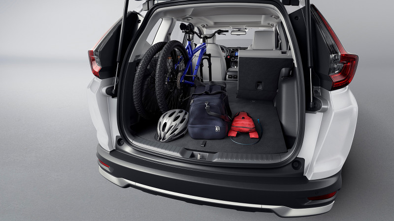 O CR-V 2021 oferece espaço para bagagens amplo. Com a segunda fileira de assentos dobrada, é possível carregar objetos de grandes dimensões, graças ao assoalho de carga totalmente plano. Além disso, o rebatimento dos bancos traseiros é feito de forma fácil, com um único movimento.