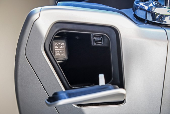 Prático e usual, o porta-objetos conta com tomada 12 volts, uma exclusividade e diferencial da PCX 150 na categoria, facilidade que possibilita adaptar carregadores de celular ou utilizar um GPS, indispensáveis para o dia a dia. Sob o banco, um compartimento porta volumes de extrema utilidade para diversos fins. Aberto por meio de um botão tem capacidade de 25l e permite acomodar um capacete fechado ou até mesmo objetos pessoais como mochilas, bolsas, pastas e até mesmo sacolas de compras.