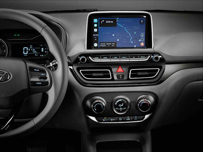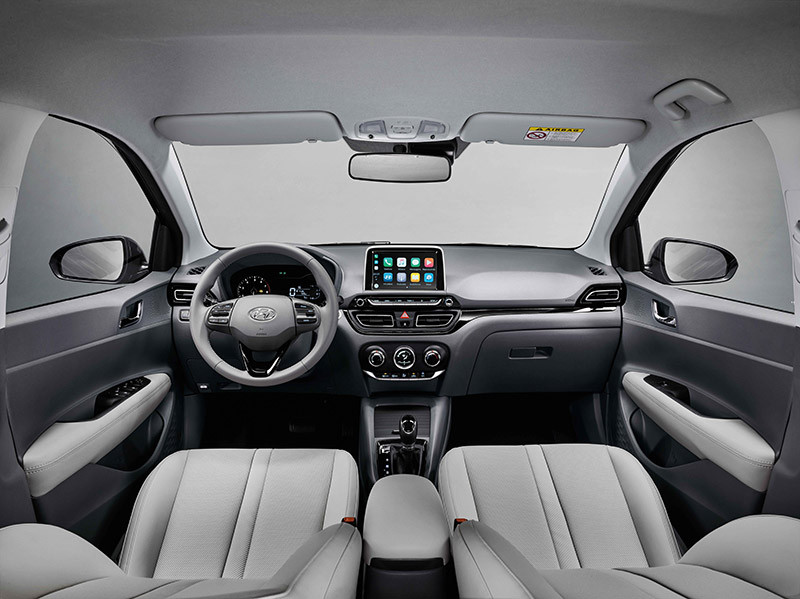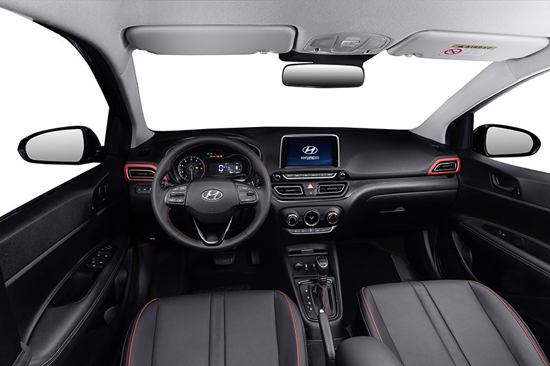 O interior da família HB20 também foi renovado com linhas limpas e horizontais, além de melhorias no acabamento e novas cores.