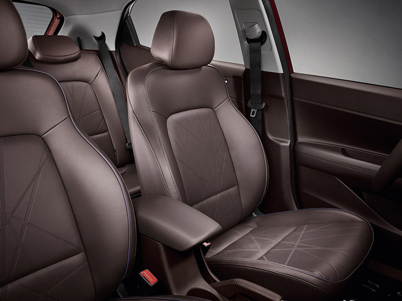 Todas as versões tiveram seus bancos renovados – estão mais ergonômicos, confortáveis. Um dos grandes destaques do estilo interior é o acabamento Marrom Desert, disponível para a versão Diamond Plus do hatch. Nela, a cor marrom aparece no painel, no console, nos painéis das portas, nos bancos em couro e no volante, este também revestido em couro. Detalhes na cor azul fazem parte do estilo e estão presentes ao longo do painel e nas costuras do banco, volante e manopla de cambio.