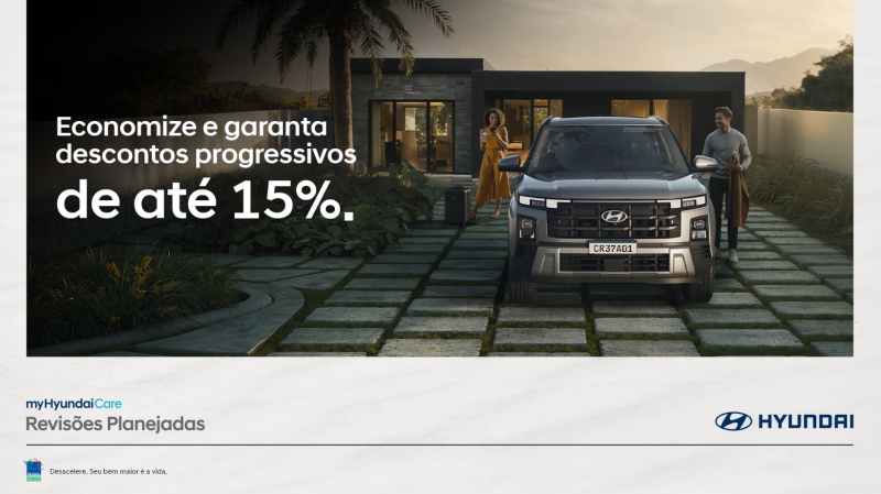 A Hyundai Motor Brasil anuncia o lançamento do seu novo serviço de manutenções pré-pagas, o "myHyundaiCare – Revisões Planejadas". A iniciativa permite que os clientes da marca adquiram antecipadamente um plano fechado, com três a seis revisões, proporcionando mais praticidade e previsibilidade de custos para a manutenção do veículo. O programa oferece quatro opções de planos, com descontos progressivos, e asseguram um valor fixo, livre de aumentos que possam ocorrer devido à inflação ou reajuste de peças ao longo do tempo.