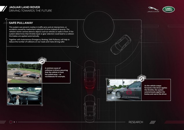 Como forma de evitar esse tipo de situação, a Jaguar Land Rover também trabalha no desenvolvimento de um sistema de assistência ao moto rista Pullaway Safe, que utiliza a câmera stereo dos veículos para monitorar a área imediatamente à sua frente. Se objetos como outros veículos ou paredes são detectados, o sistema monitora os níveis de aceleração do veículo ou mesmo a marcha atual, analisa essas informações, julga se há risco de colisão e, se sim, pode acionar automaticamente os freios do modelo e enviar um aviso sonoro de perigo ao moto rista.