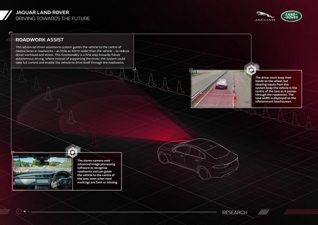 A Jaguar Land Rover planeja criar uma frota de mais de 100 veículos de pesquisa ao longo dos próximos quatro anos para desenvolver e testar uma ampla gama de tecnologias de condução conectada e autônoma ( Connected Autonomous Vehicle - CAV). Os primeiros testes do gênero estão programados para ocorrer ainda este ano em um percurso de 41 milhas (66 quilômetros) nas estradas e vias urbanas em torno de Coventry e Solihull, onde estão situadas duas fábricas da empresa.