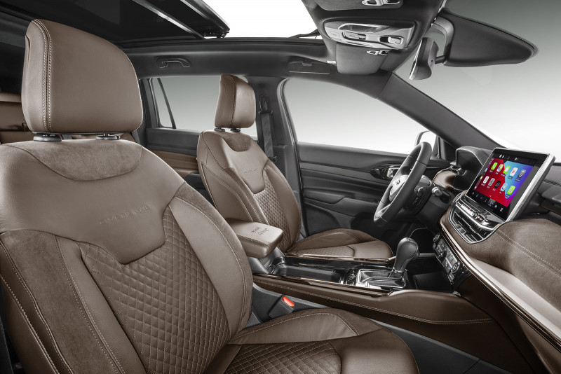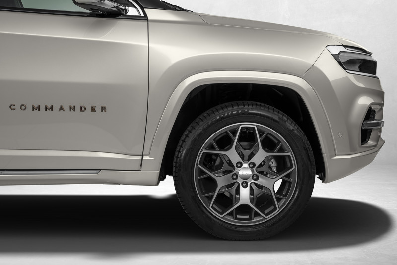 A Overland traz rodas em liga leve de 19” e bancos em couro e suede marrom. Para completar, além dos conteúdos oferecidos na versão Limited T270, a versão topo de gama do Commander vem também com teto solar panorâmico, sistema de som premium Harman Kardon, banco de passageiro elétrico, porta-malas com sensor de presença e tomadas de 127v. Ela ainda traz Adventure Intelligence Plus com Alexa in Vehicle. Já a configuração TD380, além de tudo que há na Limited Turbo Diesel, traz molduras inferiores na mesma cor do veículo e Jeep Off-Road Pages.