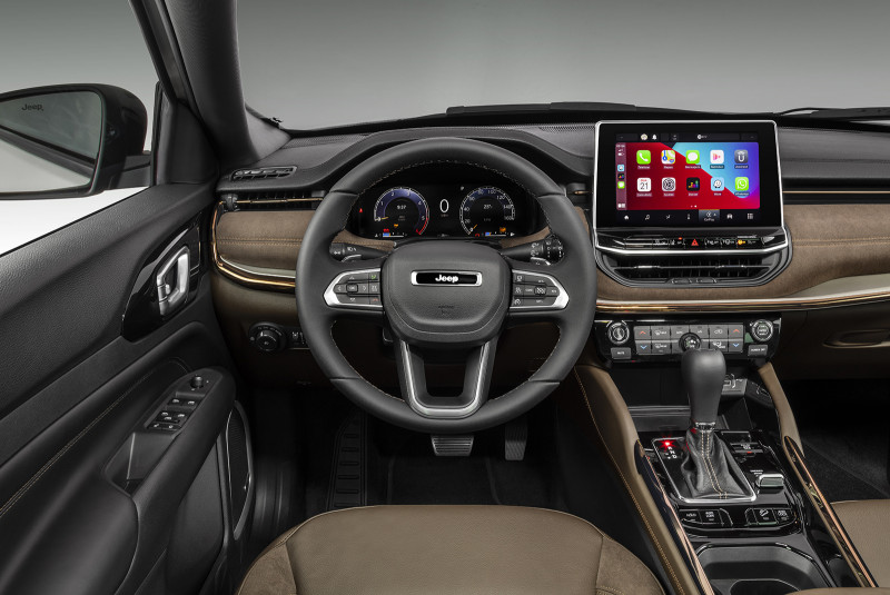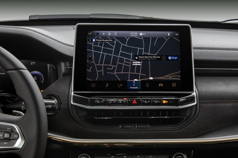 Além de tudo isso, a versão T270 turbo flex 4x2 vem com o Jeep Traction Control+. Já a configuração com motor diesel também conta com modo 4x4 Low, seletor de terrenos com três modos (Sand/Mud, Snow e Auto) e Hill Descent Control.